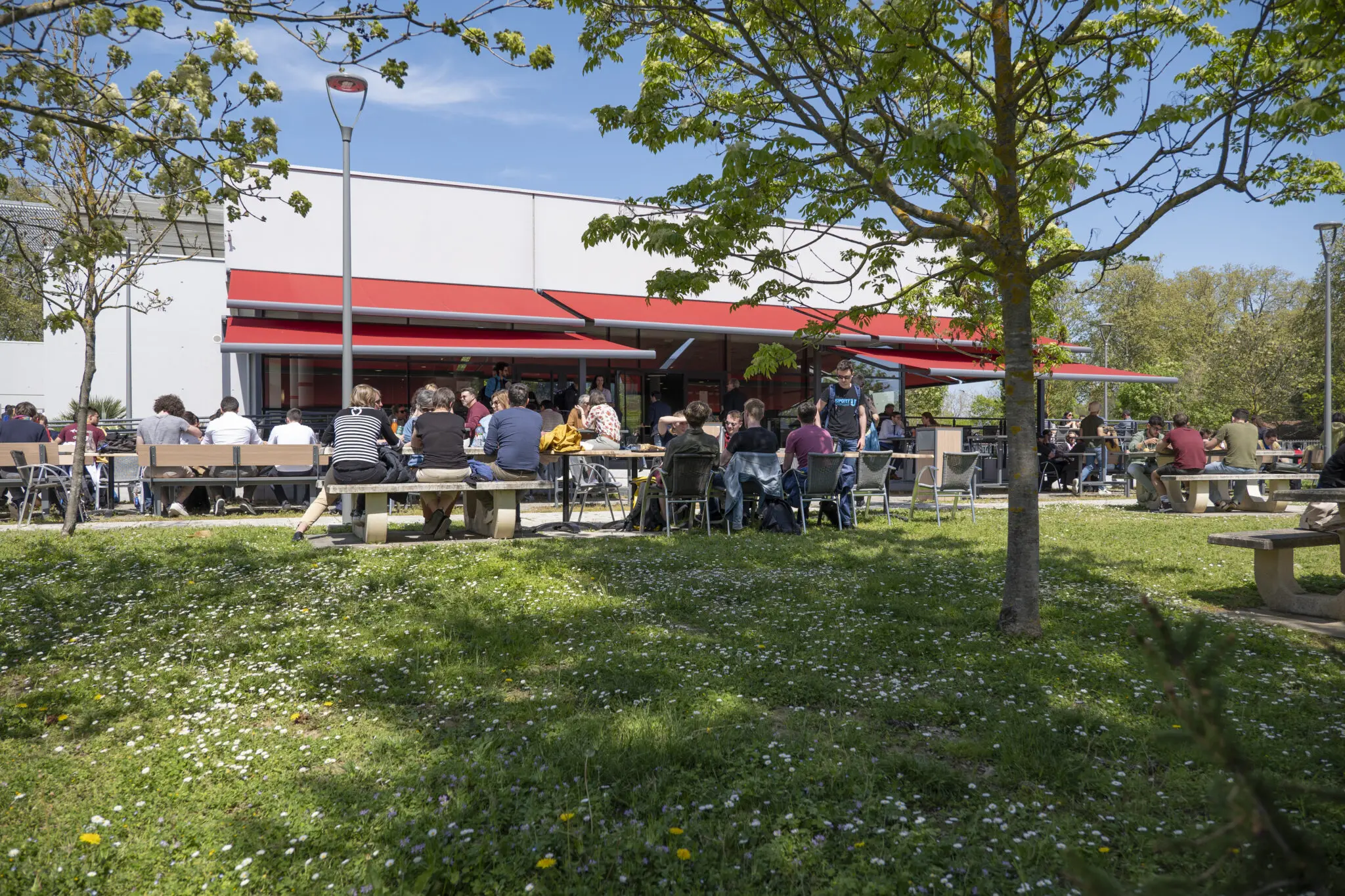 Ideally located near the teaching building, it features two large dining halls with 300 seats each and a cafeteria opening onto a pleasant terrace.